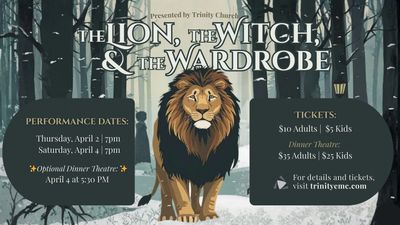 We invite you to gather with family and friends for this memorable production at Trinity Church. We can’t wait to welcome you to Narnia!